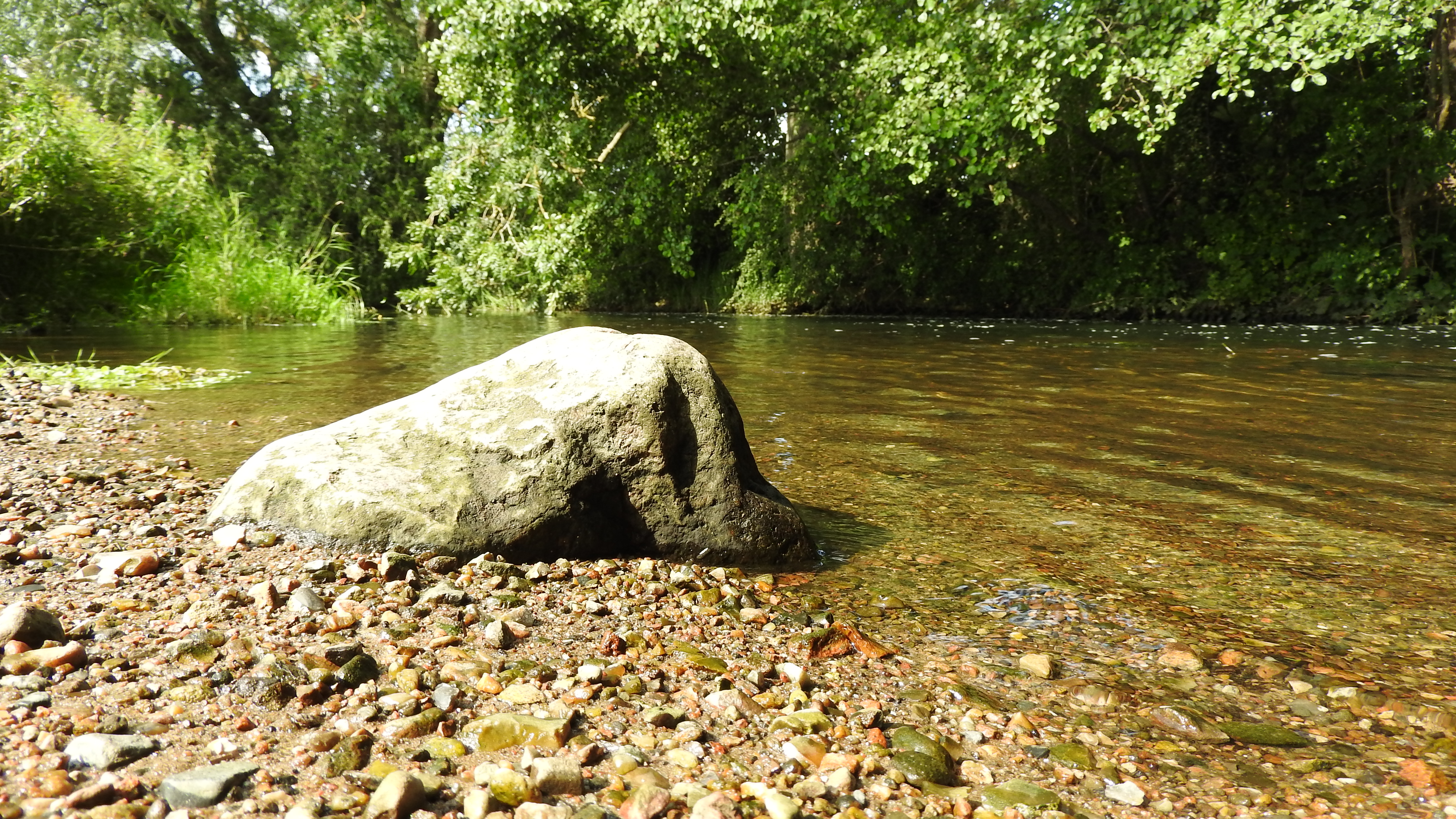 Das flache Wasser der Eider nahe der Steinfurter Mühle Blickrichtung: Norden Datum: 11.08.2023