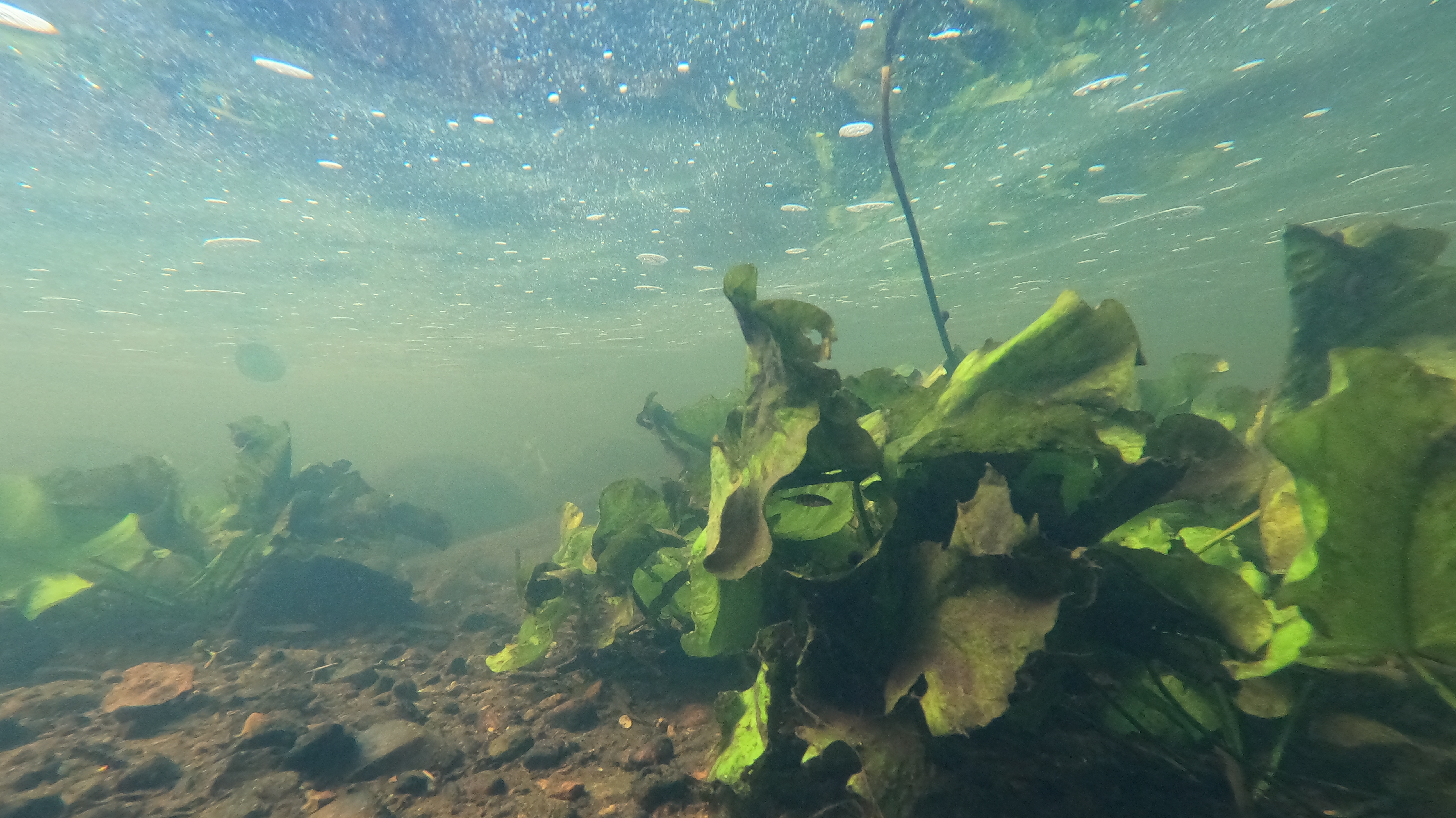 Wasserpflanzen (und ein kleiner Fisch) in der Eider bei der Steinfurter Mühle Blickrichtung: Norden Datum: 11.08.2023