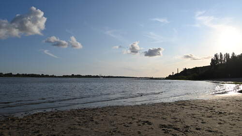 Blick entlang der Elbe von Hamburg-Rissen in Richtung Wedel Blickrichtung: Westen Datum: 03.07.2025