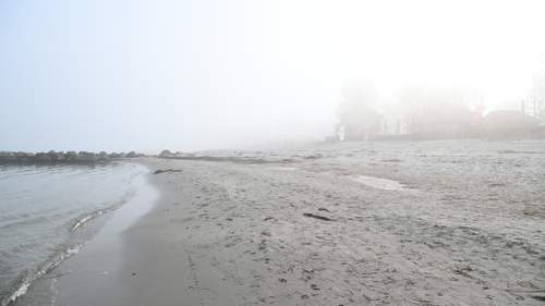 Der Strand von Eckernförde in dichtem Nebel